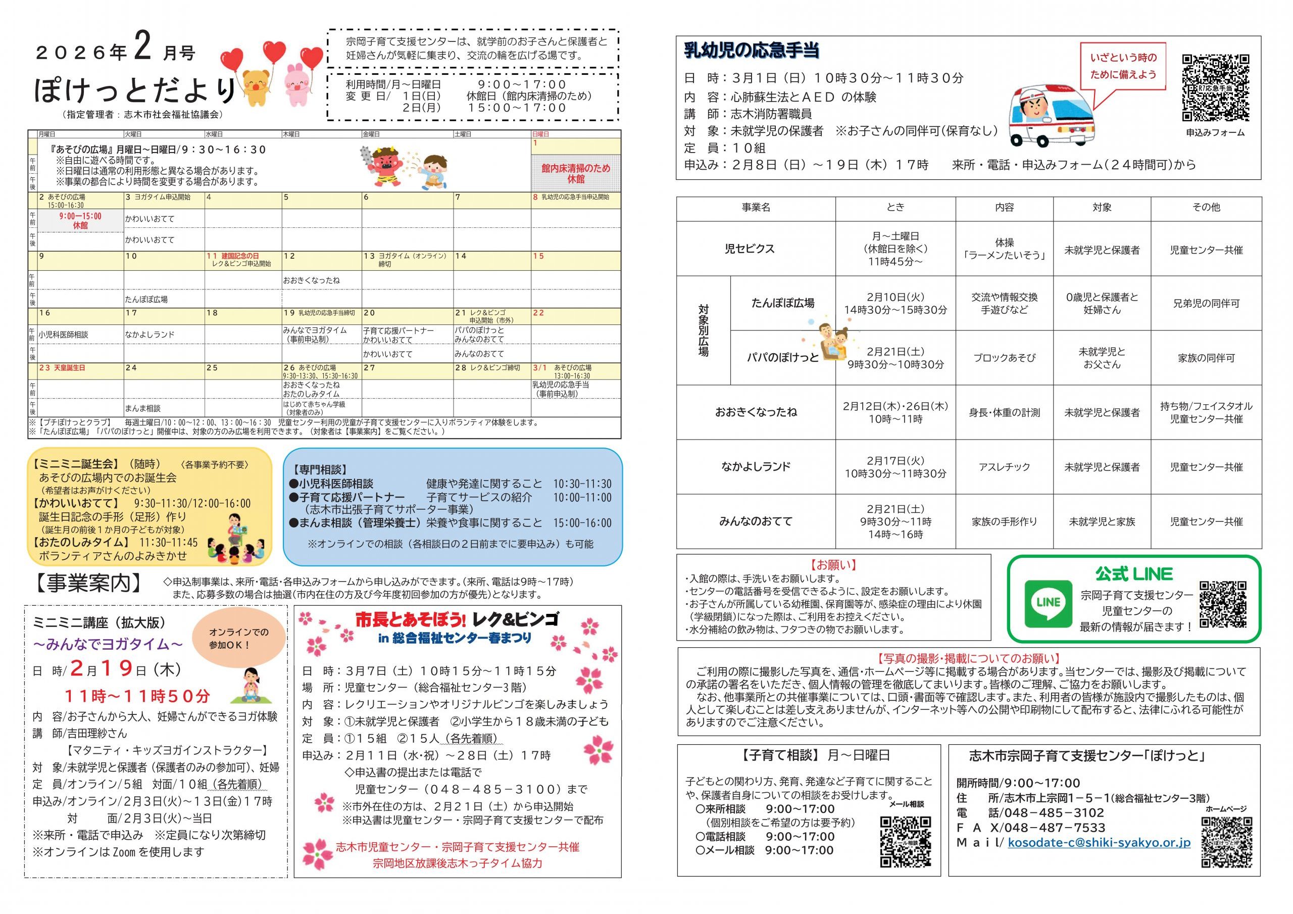 申し込みが必要な事業もあります。詳しくは「ぽけっとだより」をご覧ください。