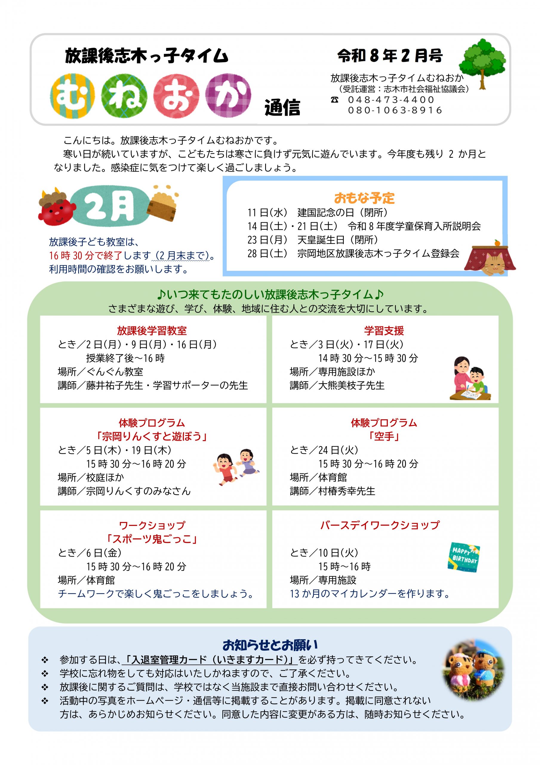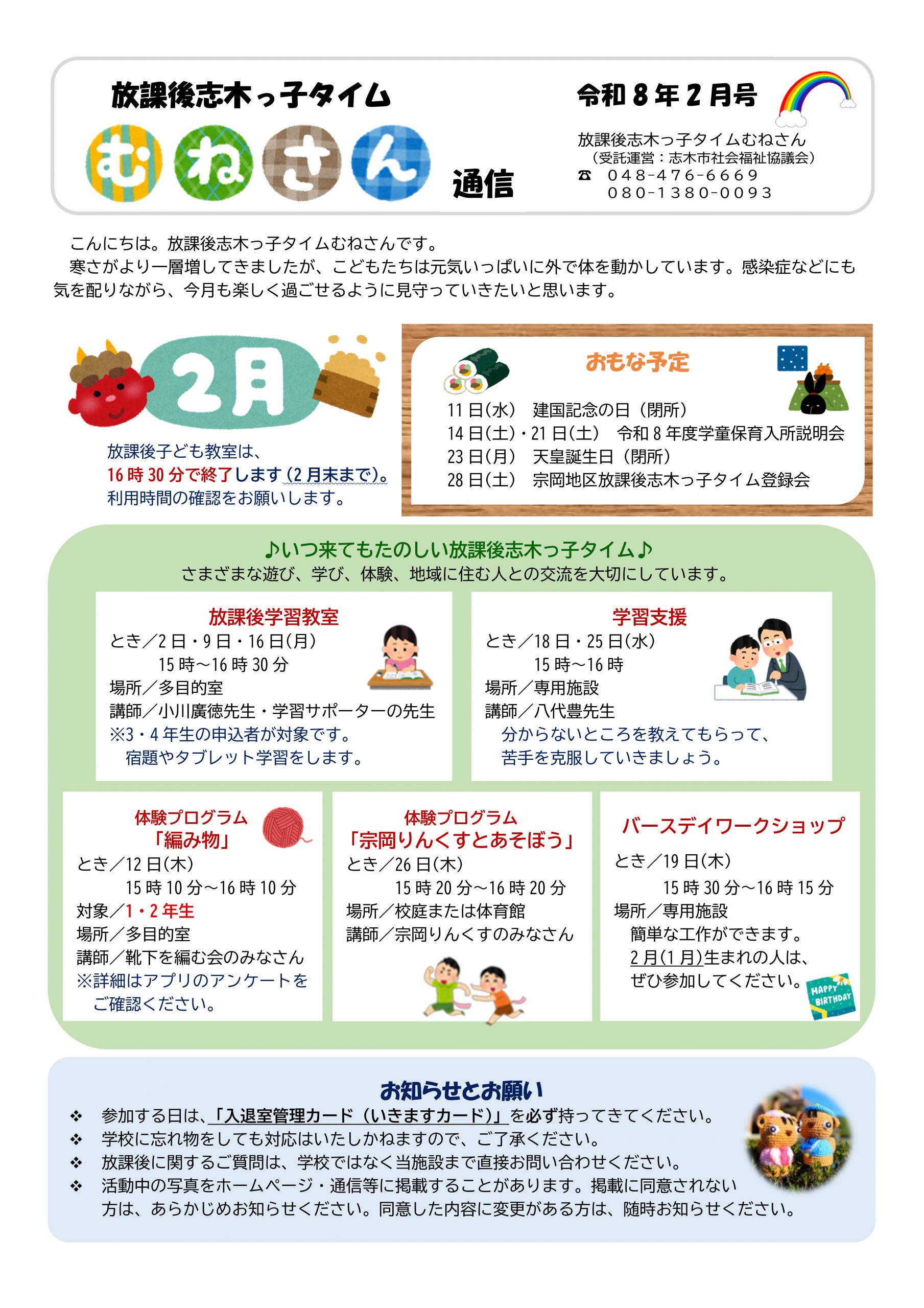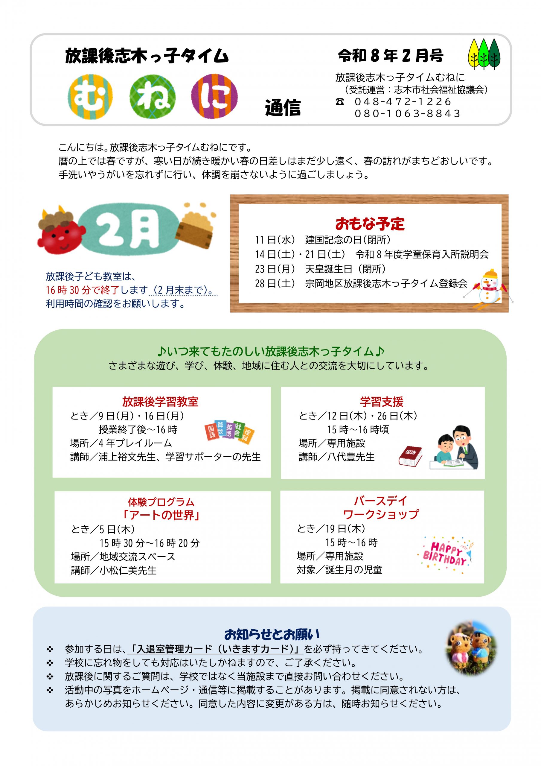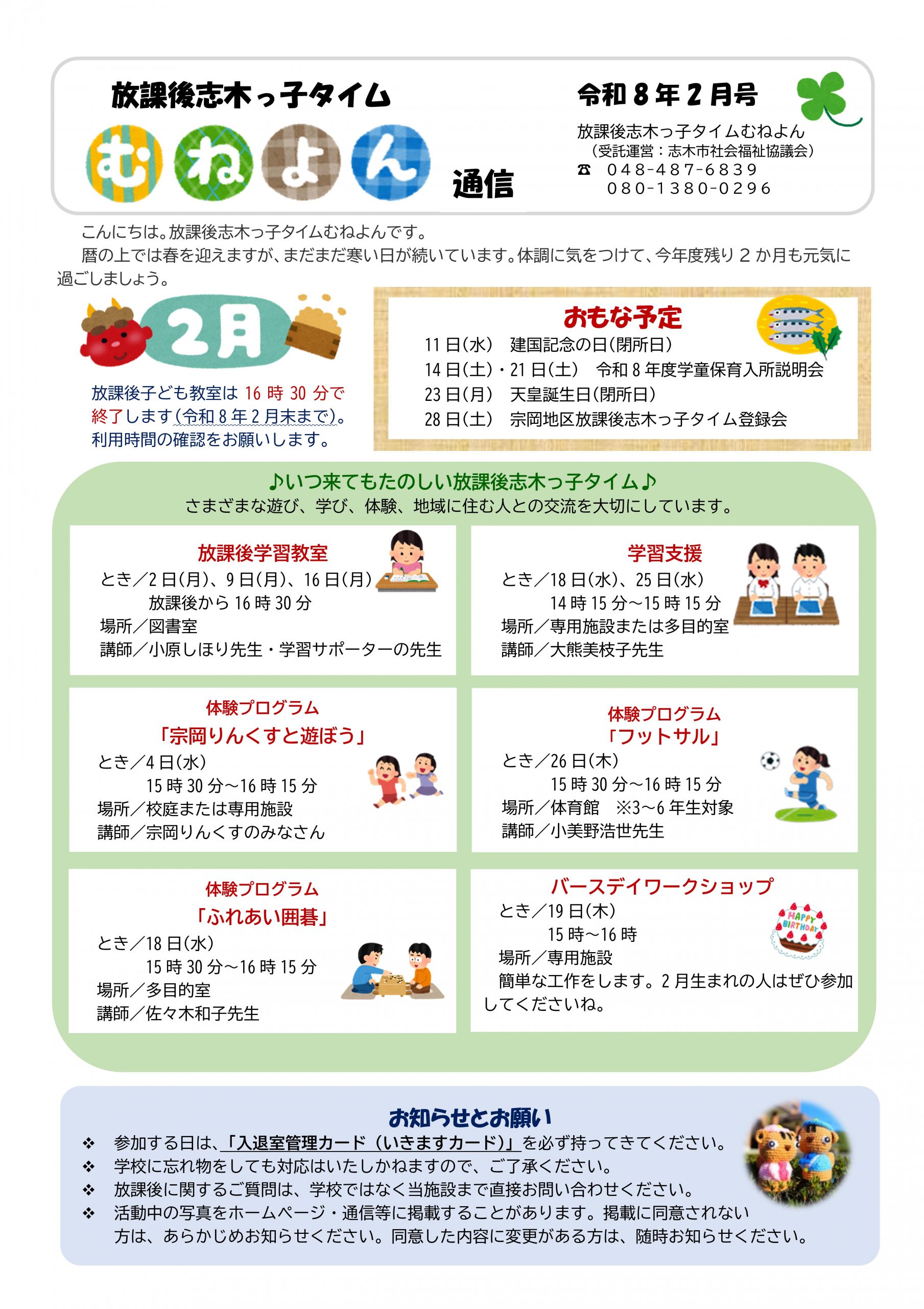 放課後志木っ子タイムの通信バックナンバーについては