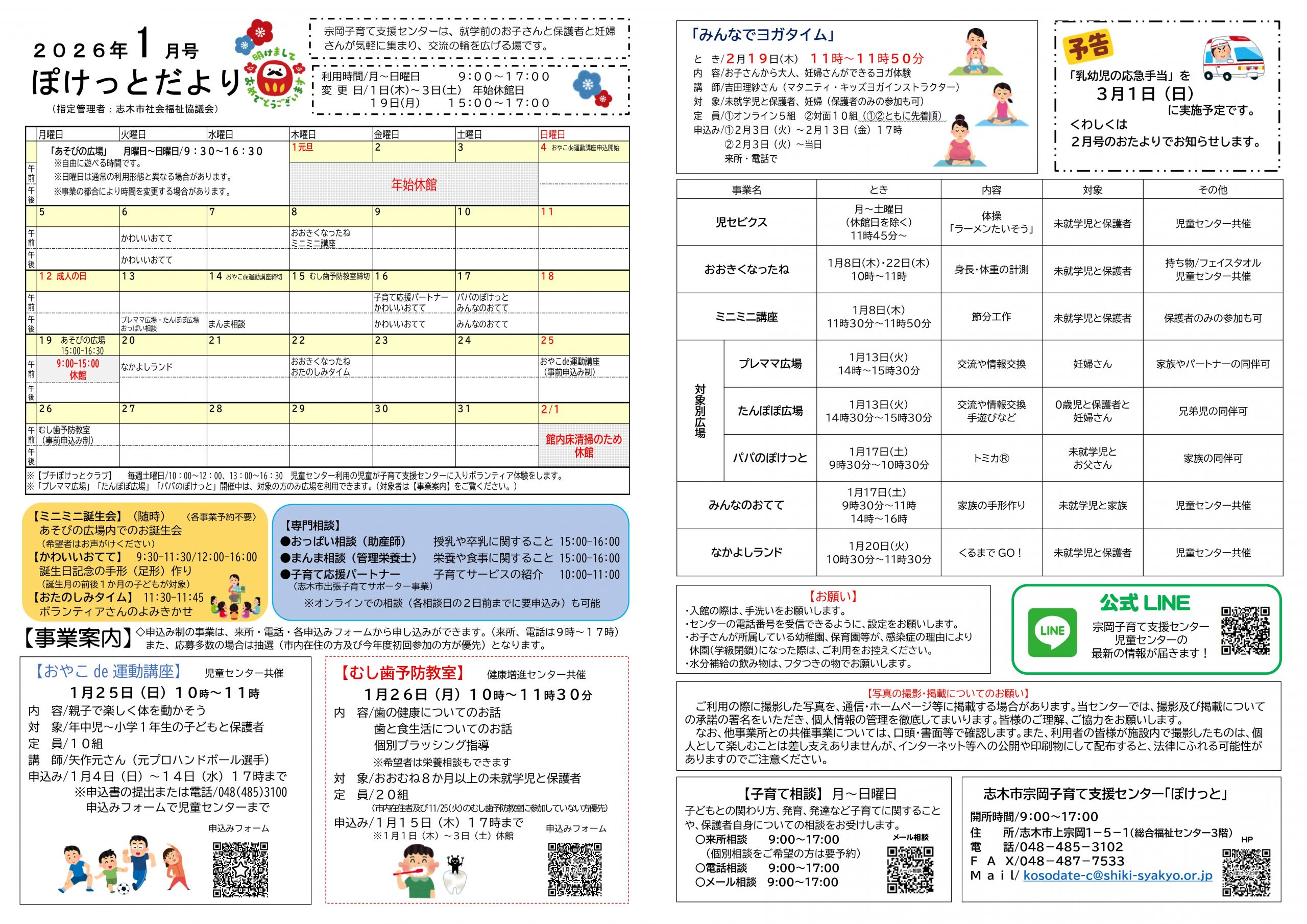 宗岡子育て支援センター「ぽけっとだより1月号」