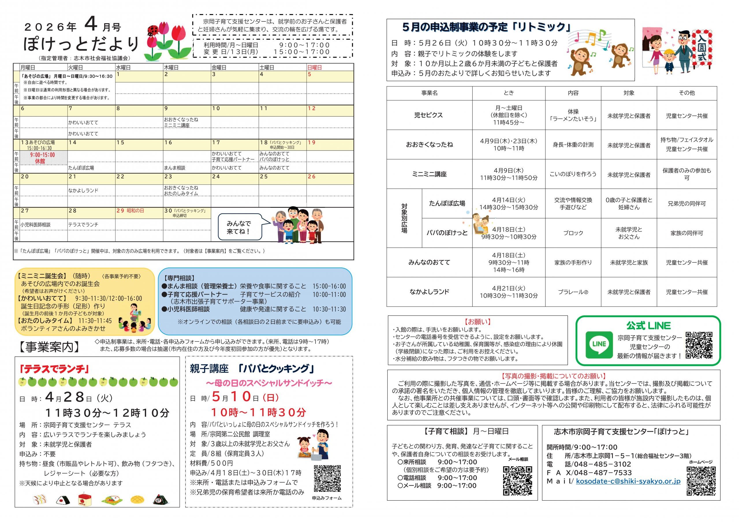 宗岡子育て支援センター「ぽけっとだより4月号」