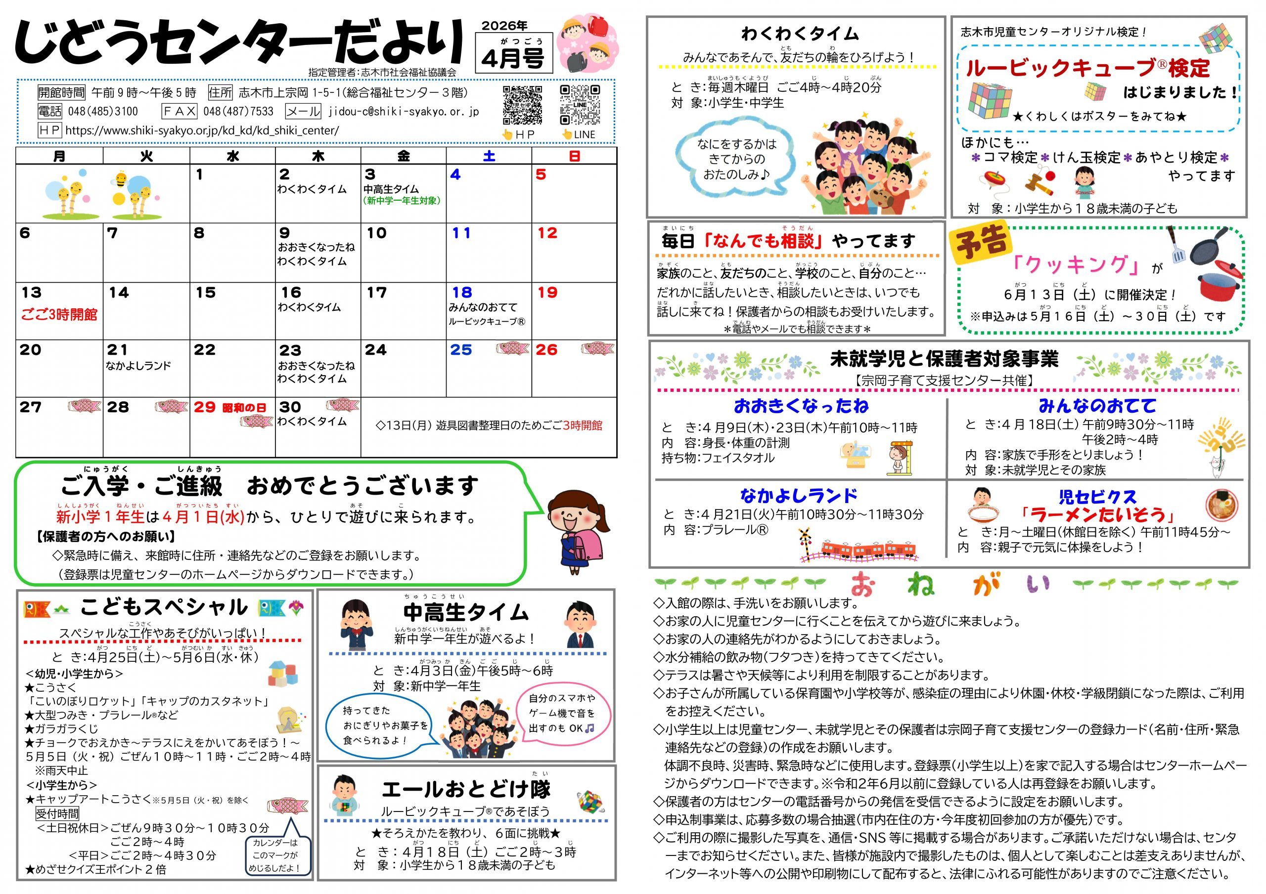 じどうセンターだより4月号 志木市児童センター バックナンバーもありますので、ご覧ください。