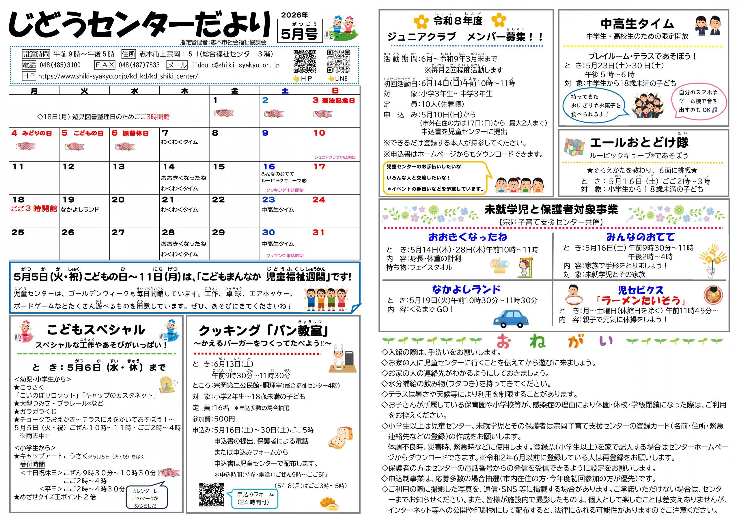 じどうセンターだより5月号 志木市児童センター バックナンバーもありますので、ご覧ください。