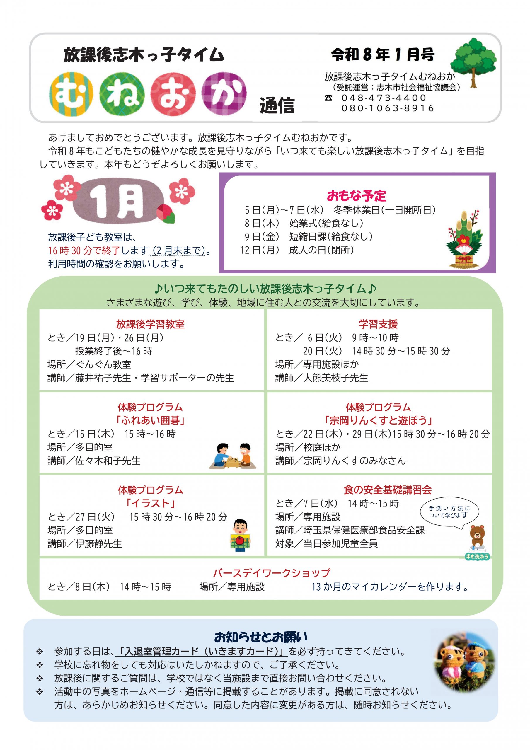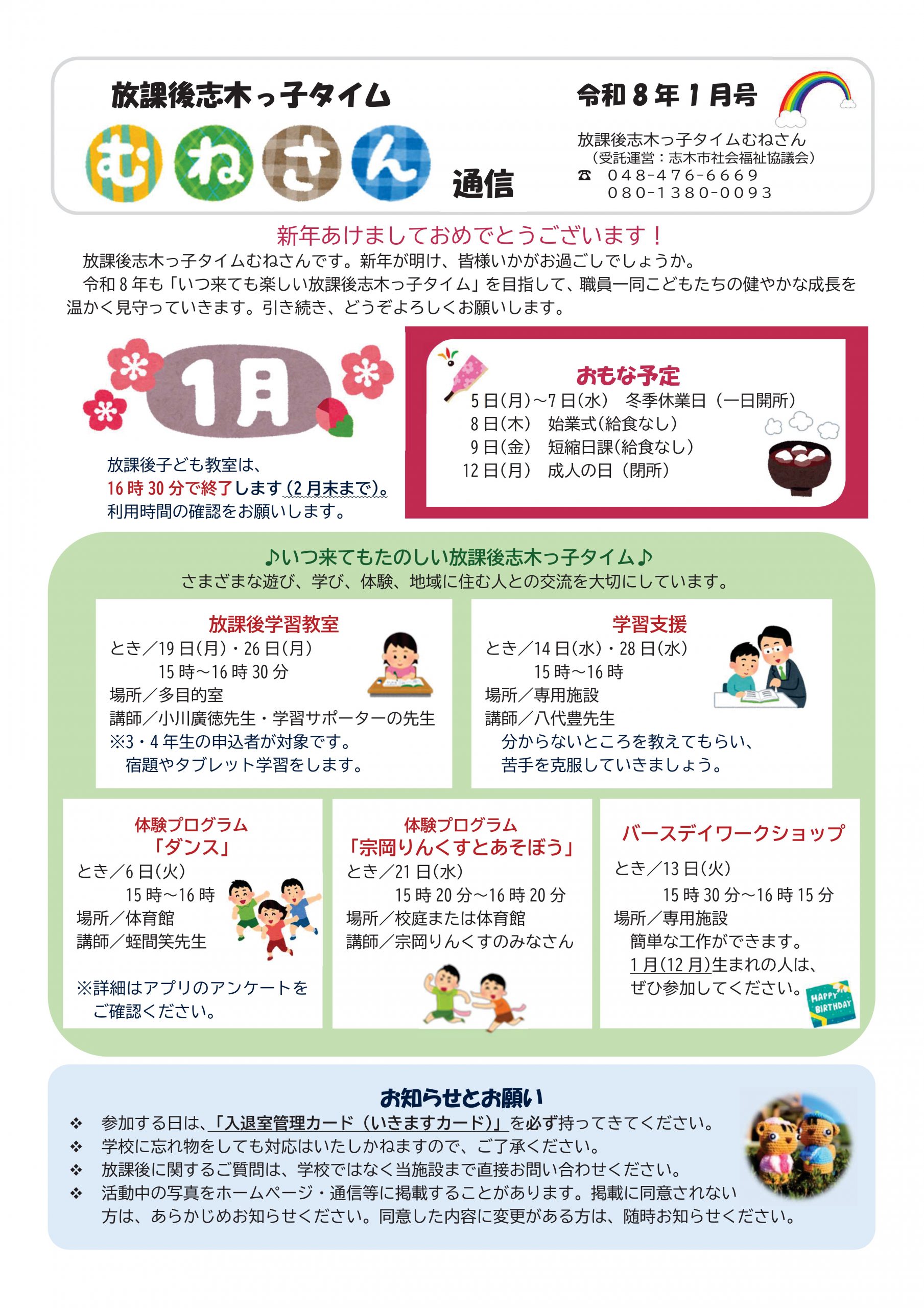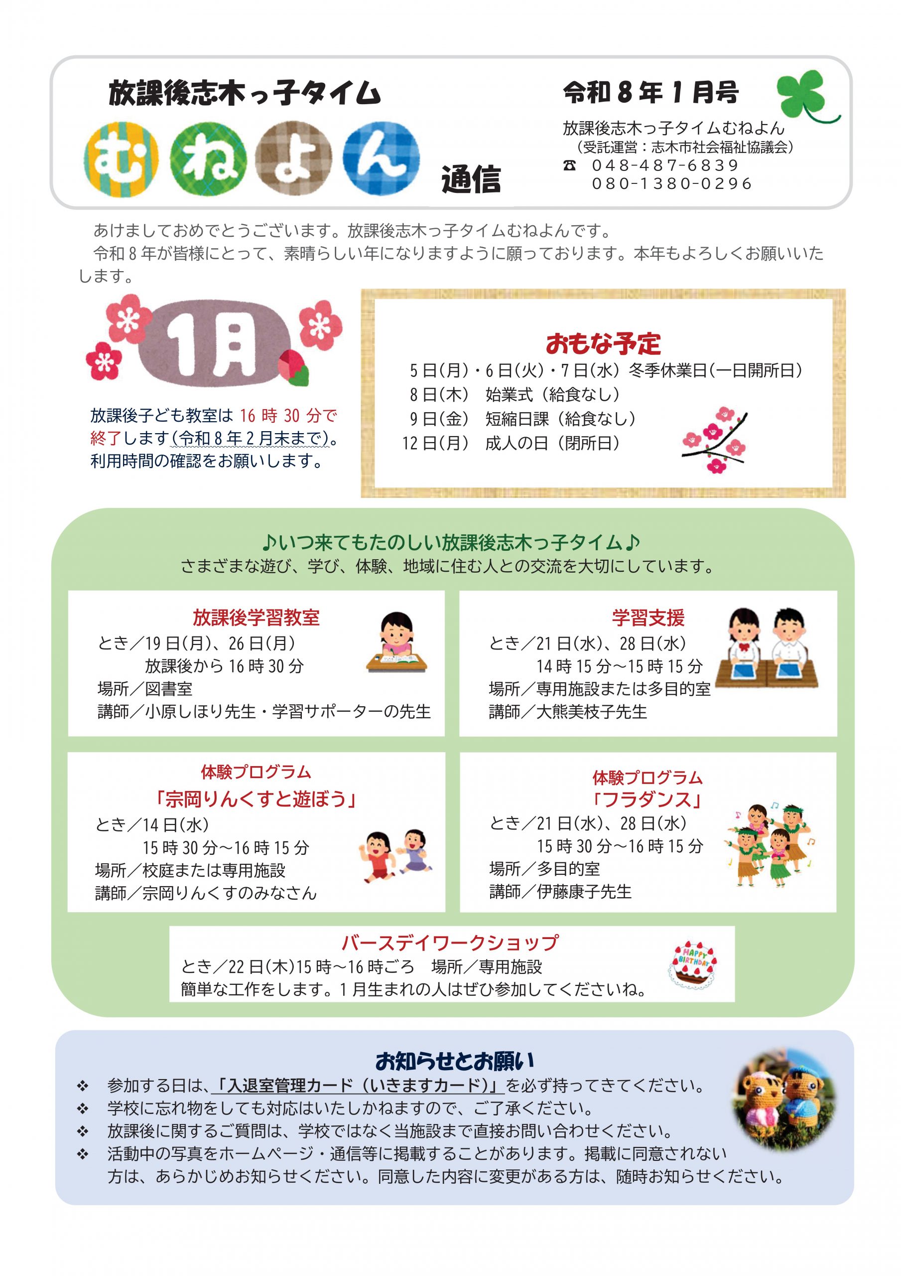 放課後志木っ子タイムの通信バックナンバーについては