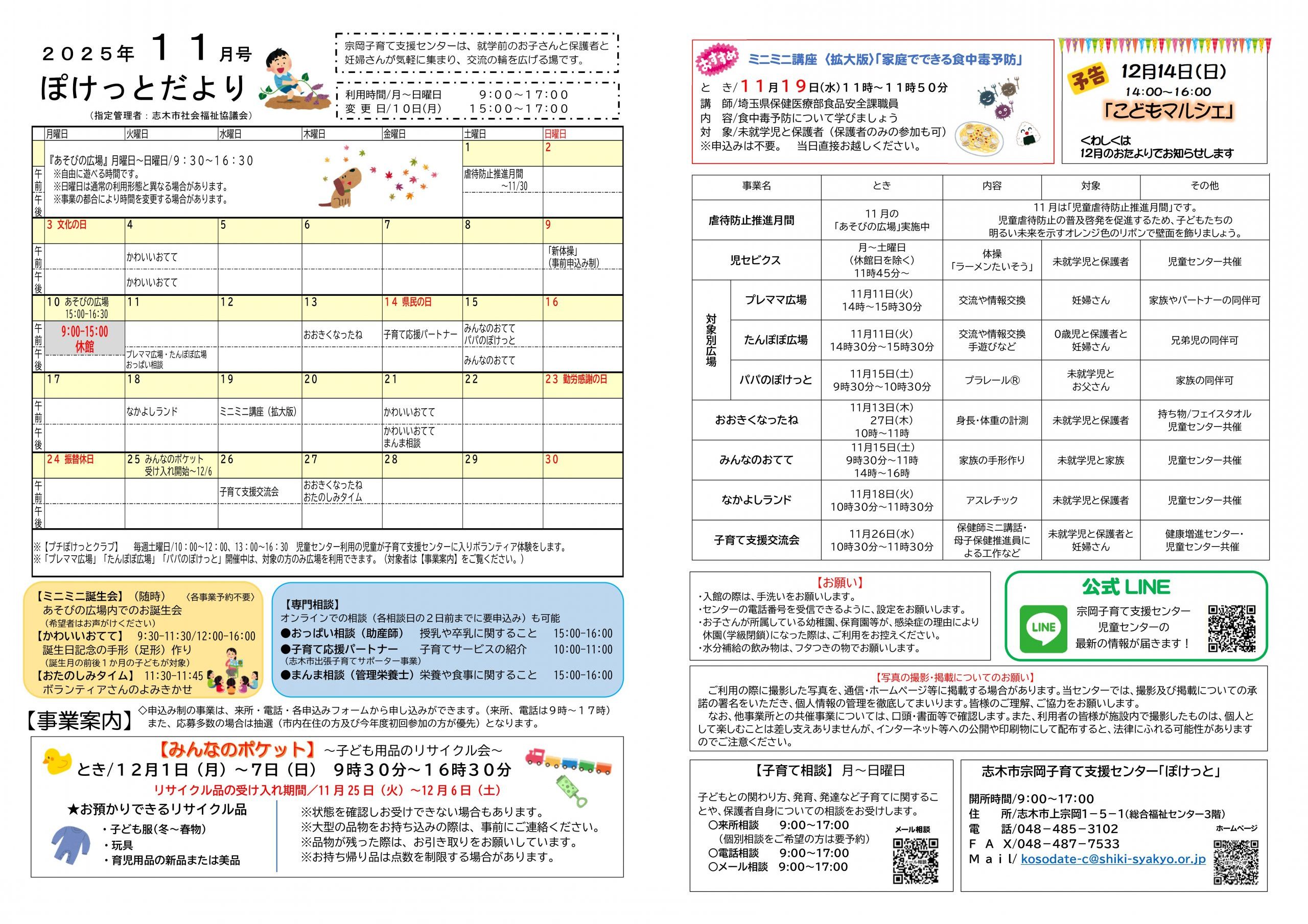 申し込みが必要な事業もあります。詳しくは「ぽけっとだより」をご覧ください。