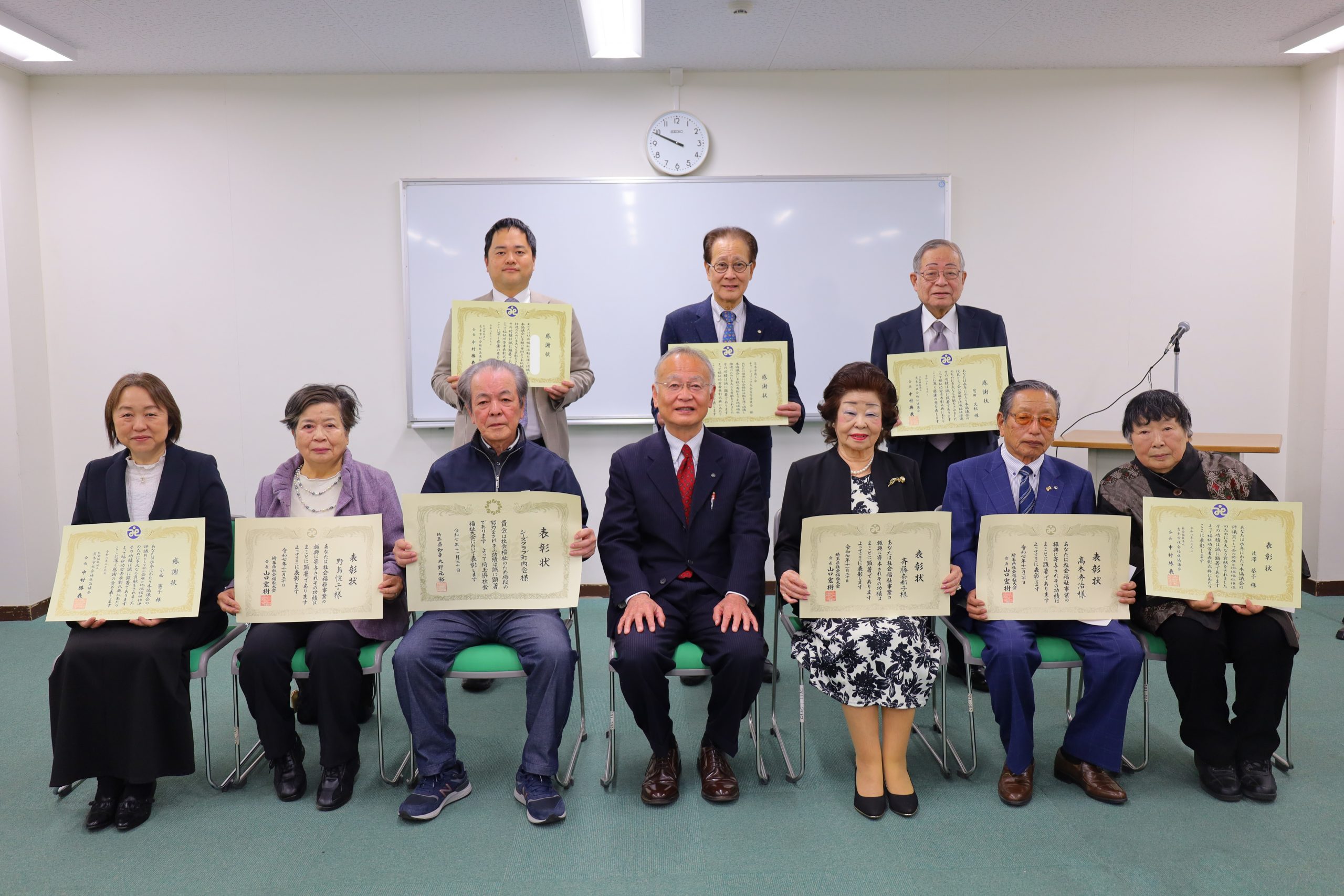 | ◇埼玉県社会福祉大会会長表彰 | 《社会福祉協議会役員》 ・寺内 弘子 ・大木 勝臣 《ボランティア》 ・森田 伸子 ・志木市話相手ボランティア「語楽の会」 ・よみきかせボランティア「えほんであそぼ」 《社会福祉協議会職員》 |